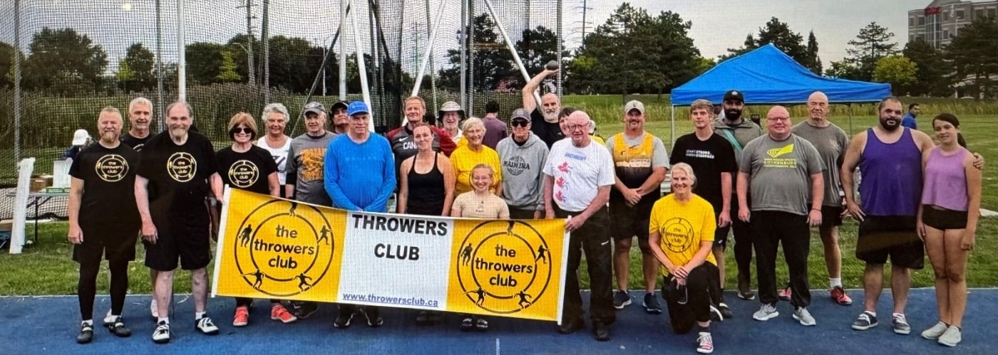 Join our vibrant community of masters throwers aged 35 to 85+ young! Established in 1962, the Throwers Club is the premier masters throwing club in Canada. We organize regular throwing competitions with all single events as well as triathlon & throws pentathlon. We also partner with OMA to hosts events such as the Ultra Weight Pentathlon at the Ontario Throws Festival. Newcomers are most welcome. Don't worry if it has been years since you held a shot or discus or you've never tried throwing. Come join us! You are never too old to start!